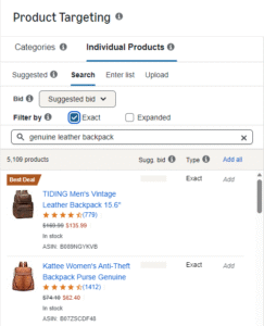 For example, if you’re selling a genuine leather backpack, add negatives like: