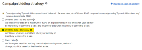 2. Select Dynamic bids – down only.