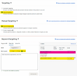 Step 3: Add ASIN and Category Targeting