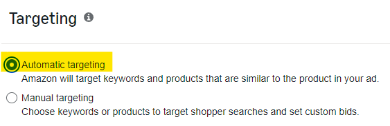 2. Under Manual Targeting, choose Keyword targeting.