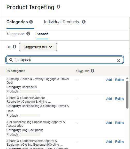 Step 3: Add ASIN and Category Targeting