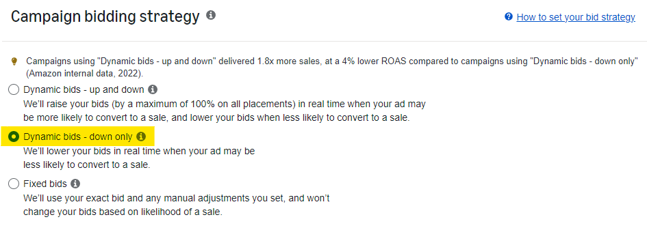 2. Select Dynamic bids – down only.